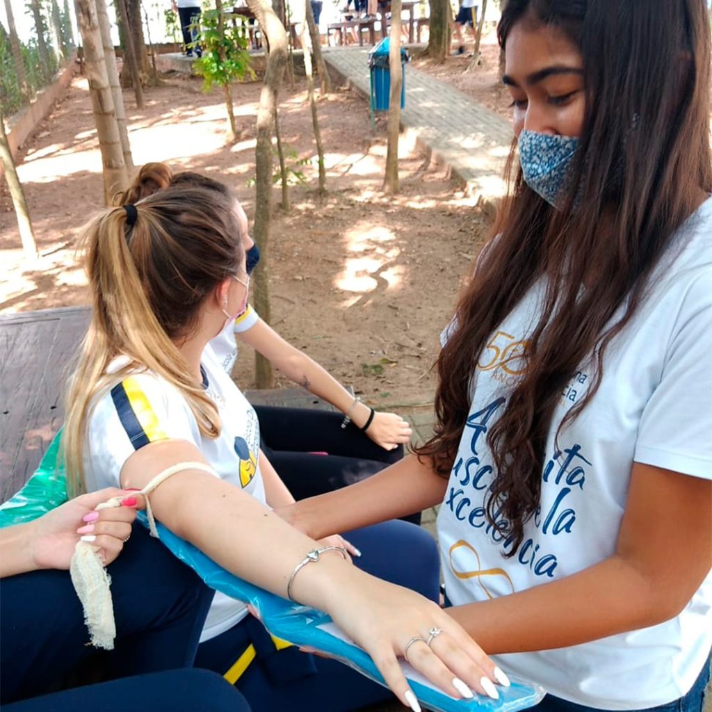 No curso “Outdoor skills” da base flexível, os alunos do 3°ano do Ensino Médio, junto com o prof. Enrico, aprenderam técnicas básicas de primeiros socorros e a importância de tais conhecimentos em situações corriqueiras. Após a parte teórica, fizeram aulas práticas de imobilização e transporte utilizando materiais como tala e maca, treinamento de massagem cardíaca e discussão sobre a adaptação das técnicas para socorro em áreas remotas, onde muitas vezes nem todos os equipamentos de resgate estarão disponíveis.