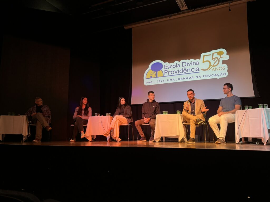 Para fechar a semana recebemos ex-alunos que ainda estão cursando o ensino superior para contarem como está a vida “pós Divina” e a importância de uma formação para a vida acadêmica, profissional e pessoal que eles tiveram aqui na Escola Divina Providência. Estiveram presentes os ex-alunos: Tasso Paiva – Medicina na USP, Carlos Eduardo Biasin, Ciência Contábeis na USP, Maria Eduarda Batistoni – Medicina na PUCCAMP, Natalia Belini – Letras na USP, Gabriel Heitzman – Mestrando em Psicologia PUC-SP.