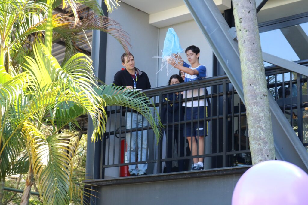 Os alunos do 7° ano estão de parabéns pelo incrível projeto de Física no programa bilíngue! Eles participaram do Egg Drop Challenge, onde criaram dispositivos para proteger ovos de uma queda alta. Com criatividade e habilidades científicas, os alunos desenvolveram soluções inovadoras e divertidas, abordando temas como gravidade e resistência do ar.
