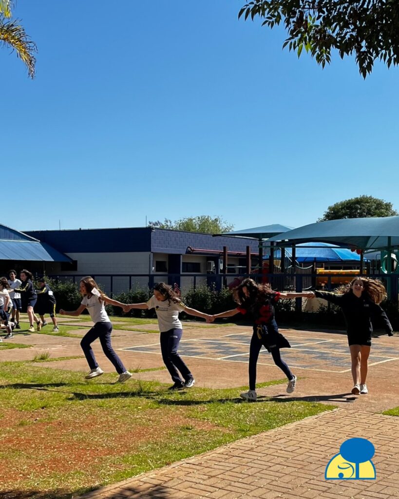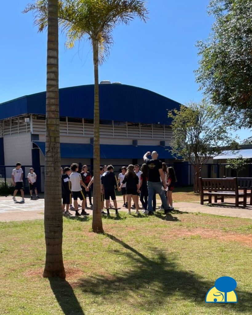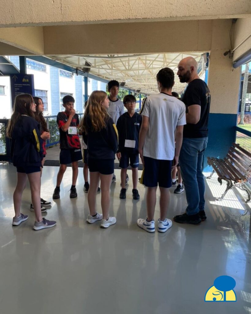 Os alunos do 6º ano deixaram a sala de aula para uma rodada de ‘pega-pega corrente’, uma atividade que simulou os diferentes níveis tróficos de um ecossistema. Divididos em produtores, consumidores primários, secundários e decompositores, o desafio era formar cadeias que respeitassem o fluxo de energia.