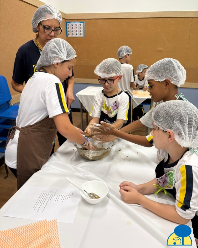 A atividade culinária é um momento de exploração sensorial que estimula a curiosidade e promove a construção de hábitos mais saudáveis desde cedo.